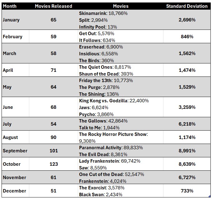 It is no surprise that October, the spookiest month of the year, tops the list for the highest number of horror movie releases.