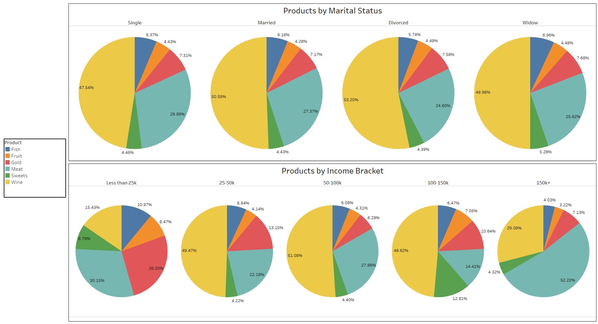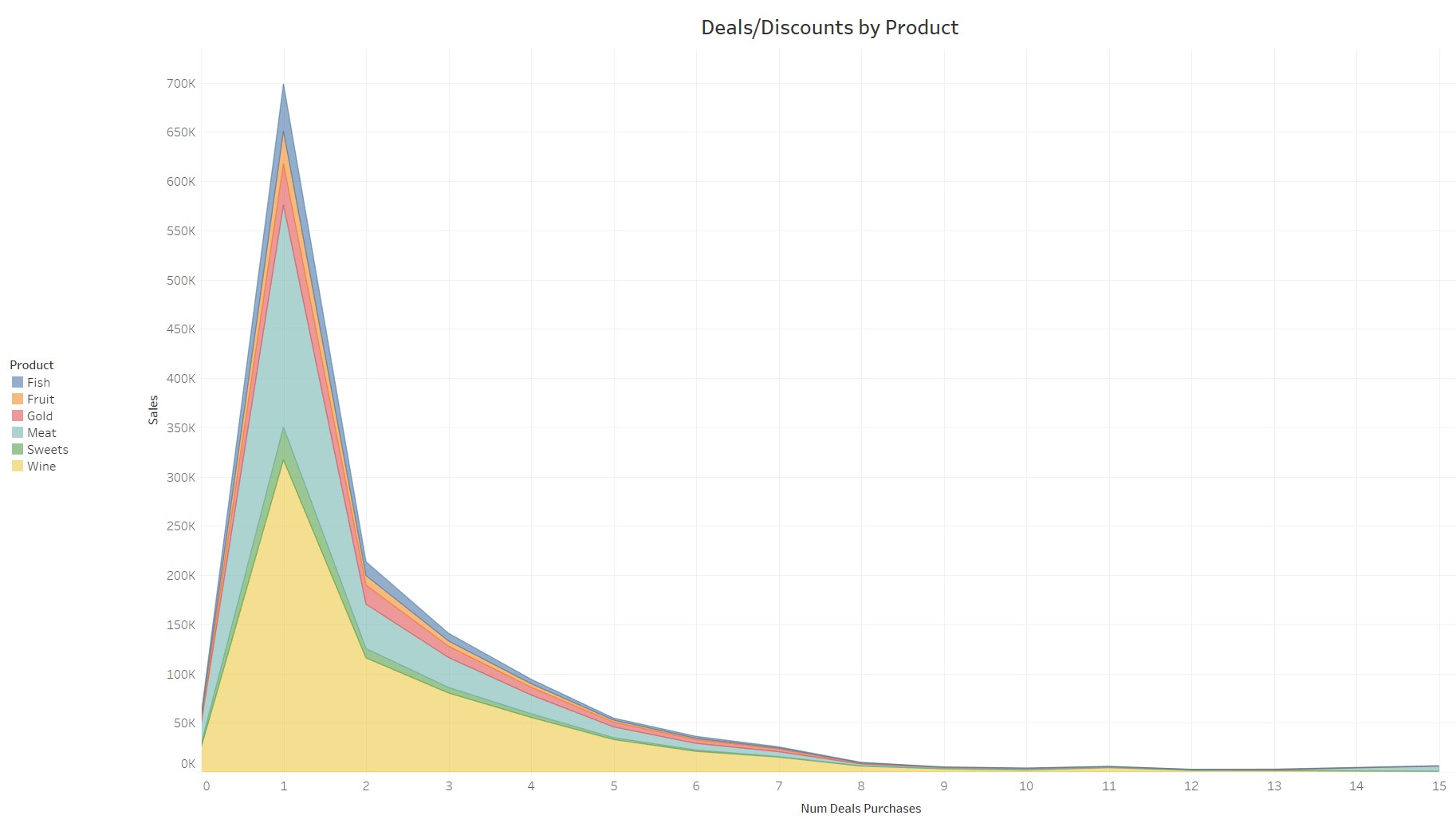 and 3) the meat purchases attributed to purchasing via catalog. There appears to be a very weak correlation between the "deals" (aka discounts) purchases for each of the products.
